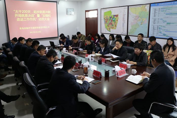 本報訊 3月18日,青島西海岸交通投資建設(shè)有限公司召開“大干200天,起步就是沖刺,開局就是決戰(zhàn)”暨“加強和改進工作作風(fēng)”動員大會,深入學(xué)習(xí)貫徹全區(qū)“項目落實年”、“改革創(chuàng)新年”和“作風(fēng)建設(shè)年”活動精神,深化作風(fēng)建設(shè),推進項目落實,高標準、高效率、高水平推進青島西客站規(guī)劃建設(shè)。